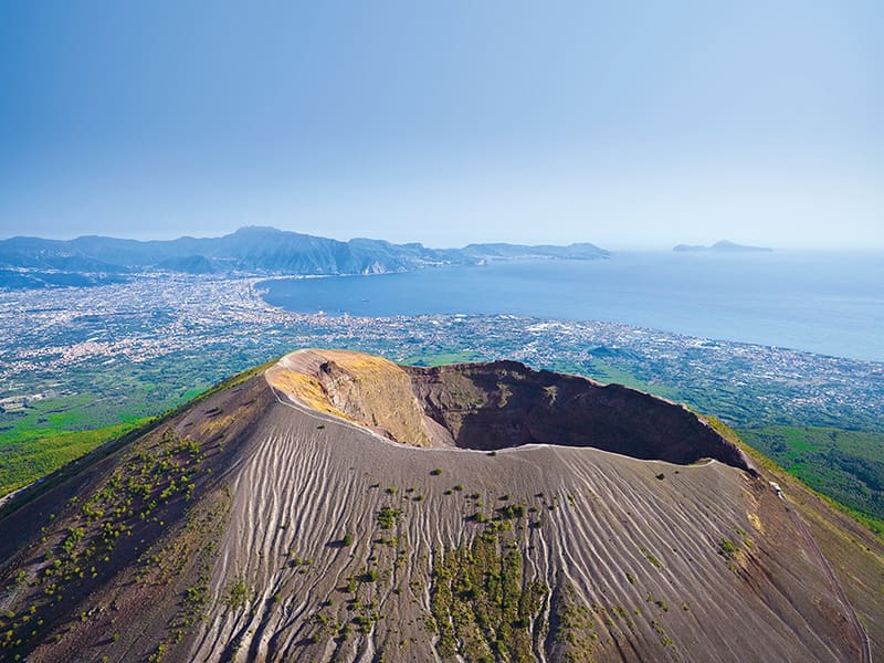 Mount Vesuvius is one of the most famous volcanoes in the world, known for its catastrophic eruption in 79 AD that buried Pompeii and Herculaneum. Today, it offers visitors a rare opportunity to explore its active crater and learn about its volcanic history.